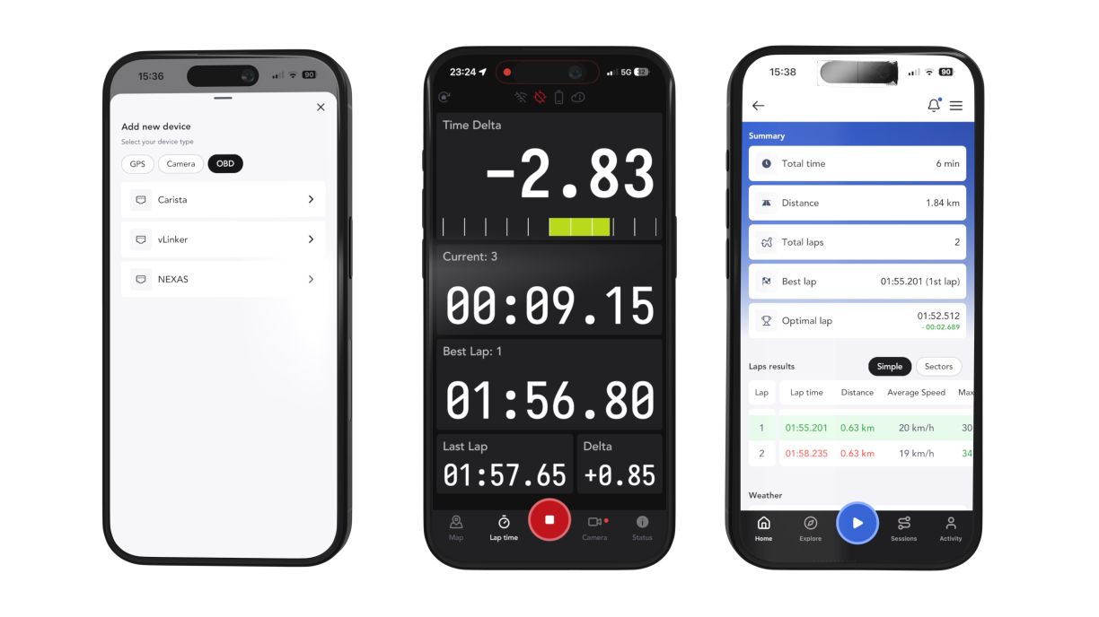We've expanded OBD compatibility to include vLinker MC+ and NEXAS NexLink. Two affordable, reliable adapters that let you pull engine data — RPM, throttle, coolant temp — straight into your sessions alongside GPS and video.
